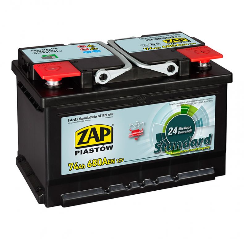 ZAP Standard 74Ah 680A PRAWY PLUS
